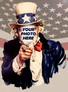 Uncle Sam I want you post maker Choose a photo Change the size and position by clicking and dragging ✔️ Crop image Recommend For You Soldier Portrait AI Face Swap AI Swap Face with a school uniform girl Native American Face in Hole AI Swap Face Diver Face in Hole photo editor Put your family photo in this NFL Detroit Lions frame with ChatGPT Hello Kitty Wonderland Photo Frame